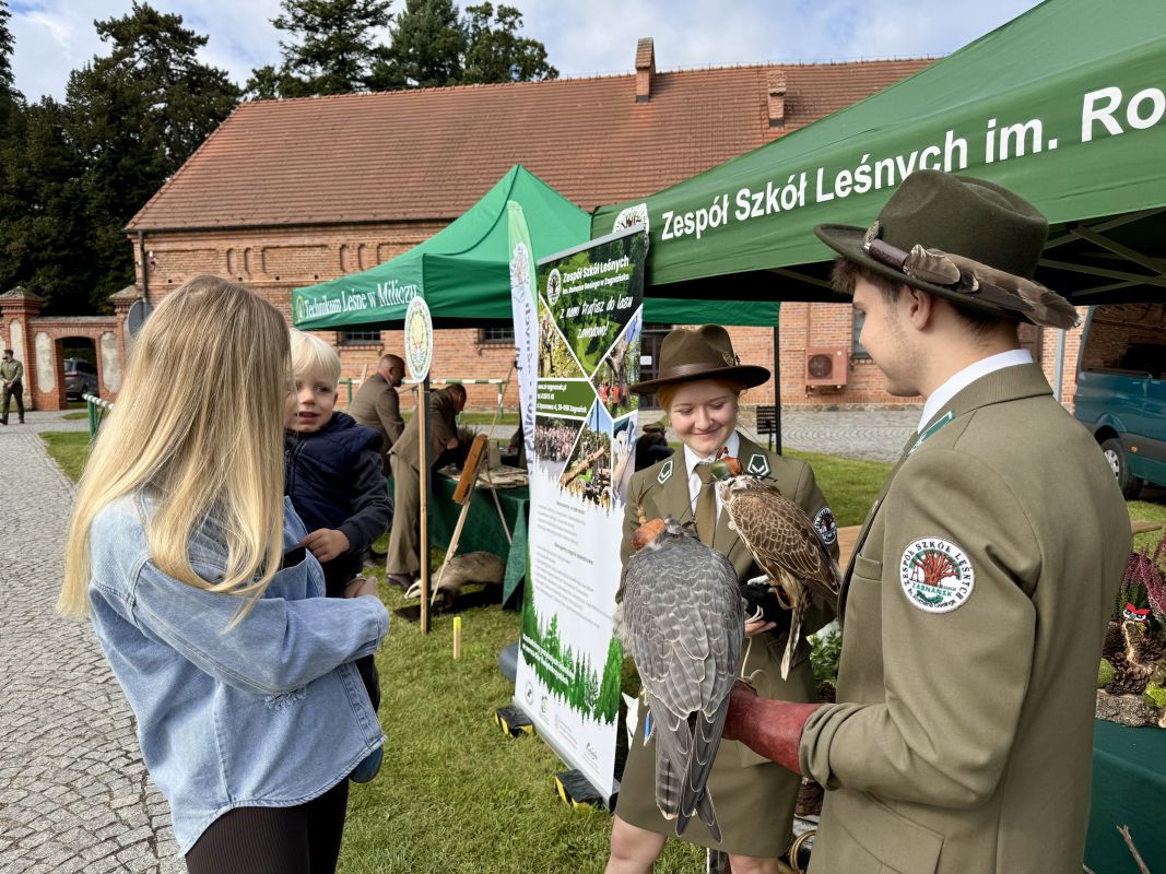 W dniach 17–18 września 2025 roku gościliśmy w Ośrodku Kultury Leśnej w Gołuchowie, gdzie odbywały się Europejskie Dni Dziedzictwa. Nasza szkoła – podobnie jak inne szkoły leśne prowadzone przez Ministra Klimatu i Środowiska – zaprezentowała stoisko promocyjne, zwracając szczególną uwagę na sygnalistów, którzy wspólnie z kolegami z innych szkół odgrywali sygnały myśliwskie. Dużą atrakcją były również pokazy sokolników, prezentujących swoich podopiecznych – ptaki drapieżne.