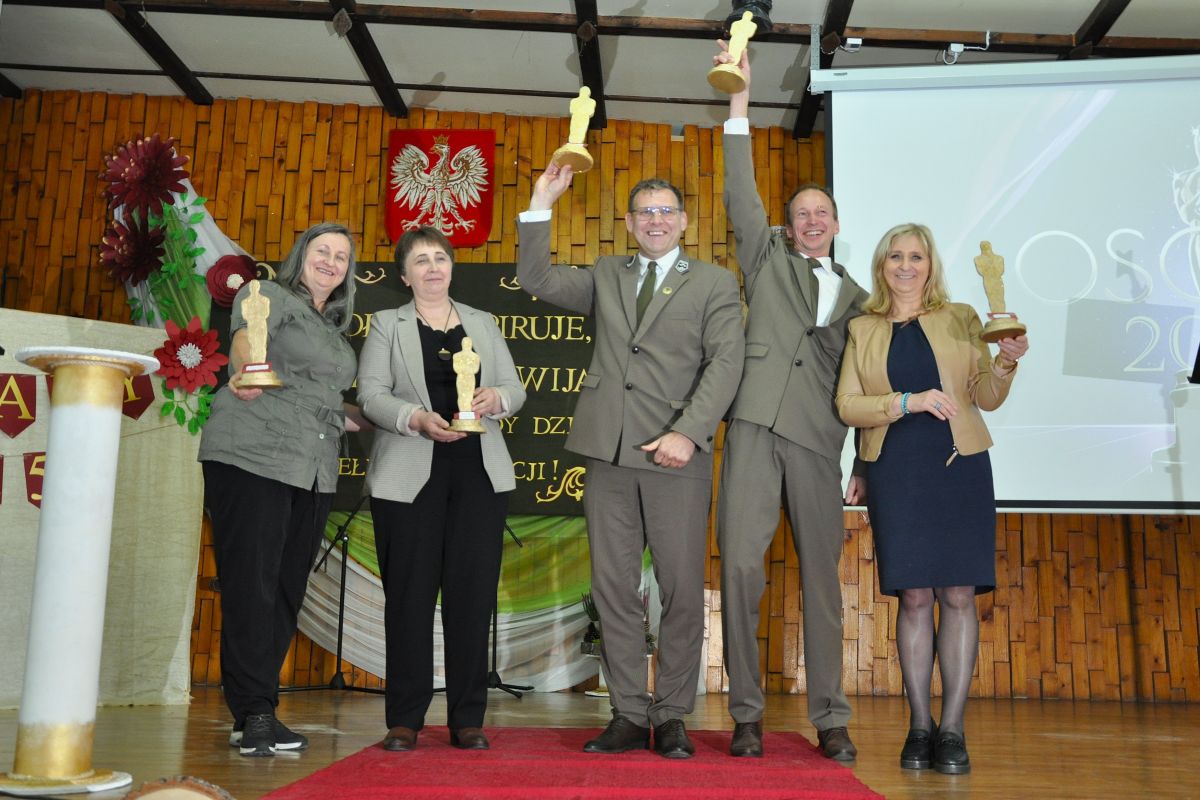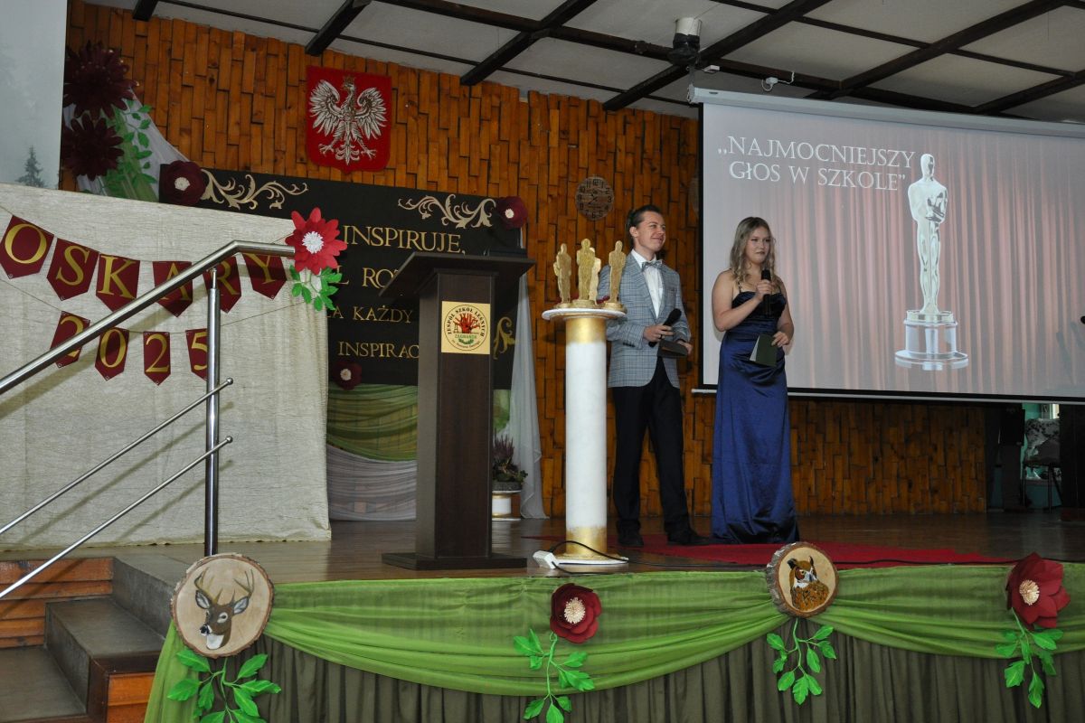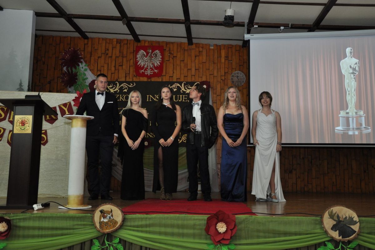 Program artystyczny przygotowany pod kierunkiem pani Anny Wywrót przez Samorząd Uczniowski oraz uczniów z grupy teatralnej „Leszy” miał wyjątkowo radosny i humorystyczny charakter. Młodzież wręczała nauczycielom symboliczne Oscary, doceniając ich wyjątkowe cechy, styl nauczania oraz codzienne zaangażowanie. Niezwykle celne komentarze opisujące nominowanych nauczycieli, pełne ciepłego humoru i dystansu, rozbawiły zgromadzoną publiczność, a oprawa muzyczna nadała wydarzeniu lekkości i wyjątkowego klimatu.