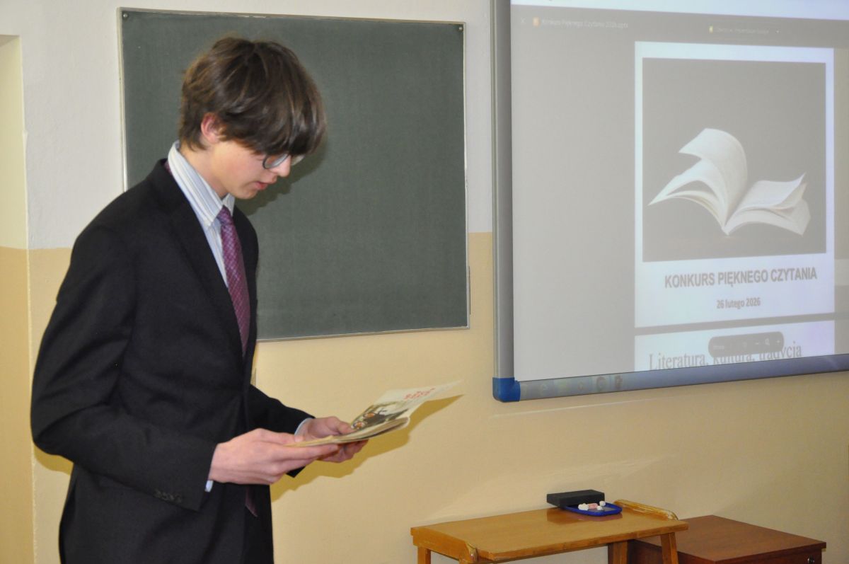 W czwartek 26 lutego 2026 w naszej szkole odbył się Konkurs Pięknego Czytania. Konkurs jest coroczną tradycją, która pozwala propagować czytelnictwo oraz rozwijać zdolności i zainteresowania literackie wśród uczniów.