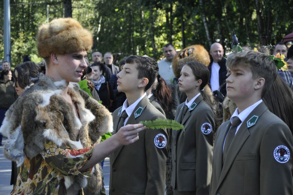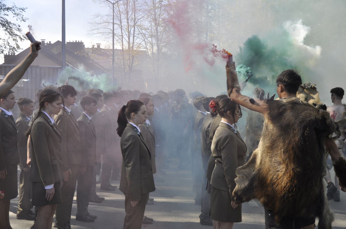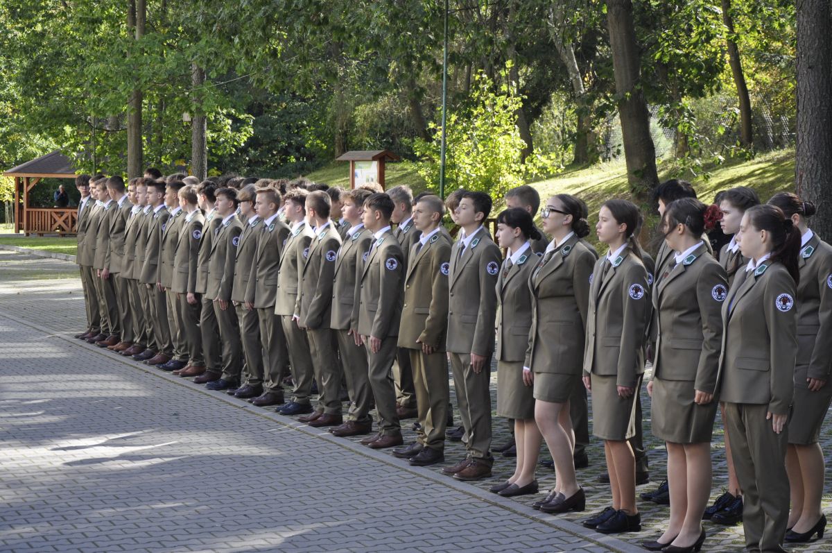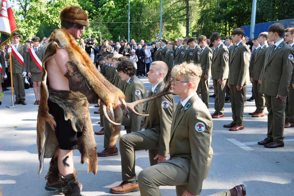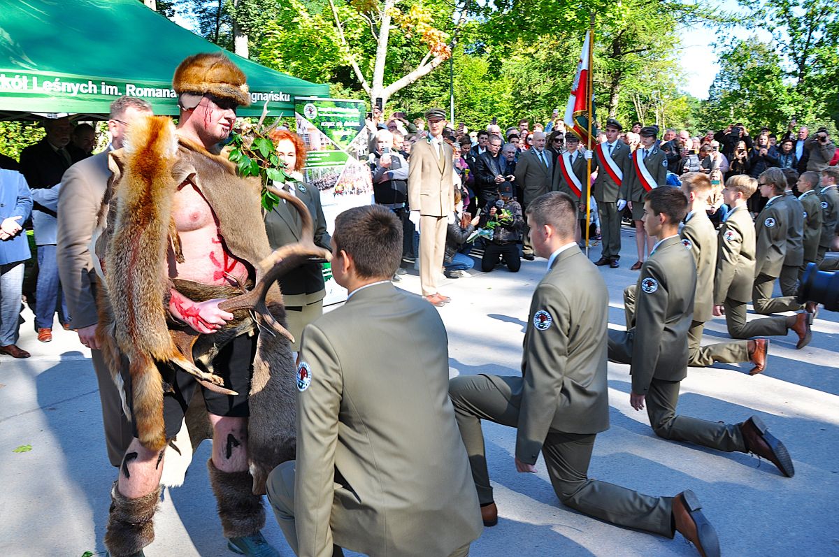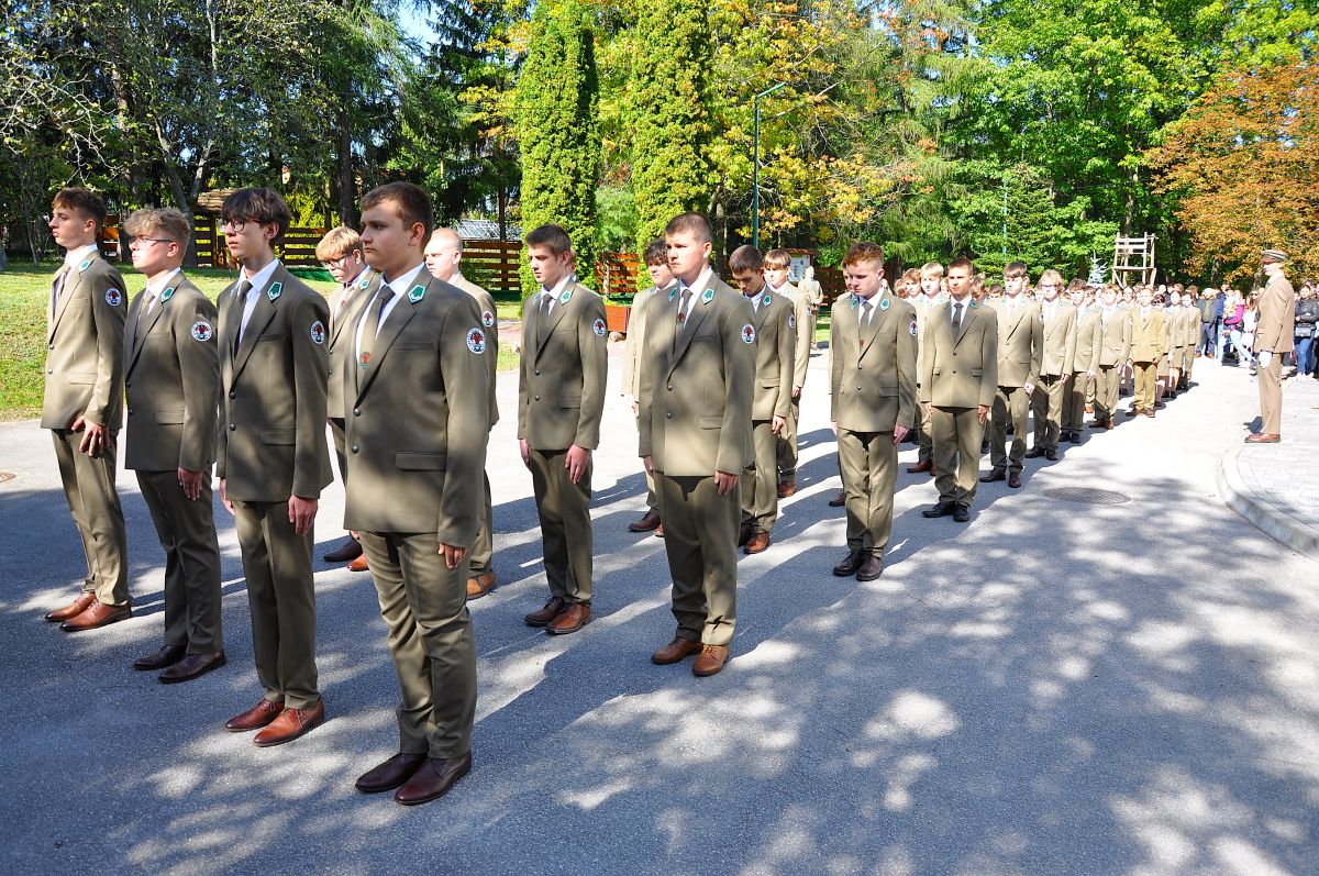 Kolejnym etapem ceremonii ślubowania było udanie się uczniów w szyku marszowym na parking obok Dębu Bartka. Młodzieży w marszu towarzyszyli nauczyciele, wychowawcy, rodzice i zaproszeni goście, a także sygnaliści z Zespołu Sygnalistów Myśliwskich oraz sokolnicy z podopiecznymi – ptakami drapieżnymi. Nieopodal Dębu Bartka - po przywołaniu ducha lasu Sylwana i jego świty - pierwszoklasiści złożyli rotę przysięgi, zostali pasowani na Borusa przez Sylwana oraz odśpiewali „Awangardę” - hymn leśników. Uczniowie klas I a i I b ślubowali, że będą godnie reprezentować szkołę, szanować nauczycieli i dołożą wszelkich starań, aby ich wyniki w nauce były jak najlepsze.