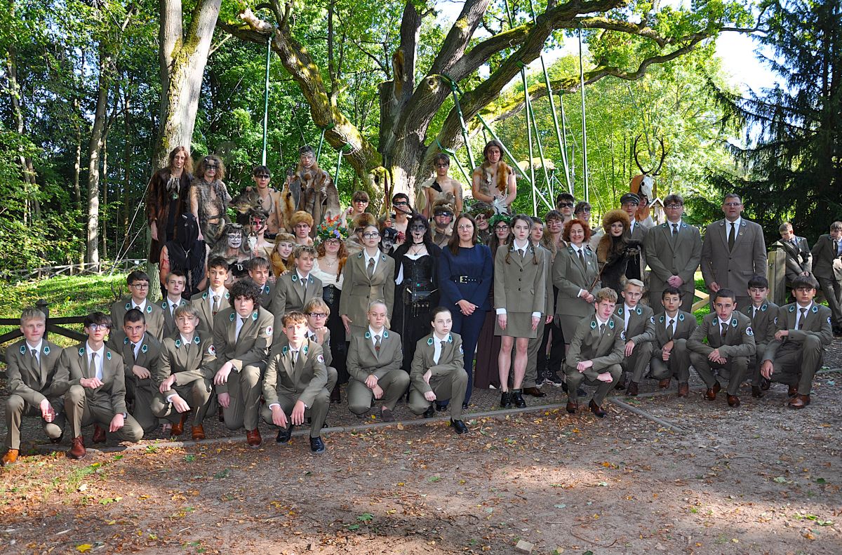 W piątek 26. 09. 2025 r. odbyło się Rykowisko, czyli ślubowanie uczniów klas I. Dla całej społeczności szkolnej to zawsze szczególny dzień, ale w tym roku wydarzenie miało wyjątkowy jubileuszowy charakter. Było to 50. Rykowisko w historii szkoły. Uroczystość rozpoczął dyrektor szkoły pan Jacek Wolski, który powitał przybyłych gości, grono pedagogiczne, rodziców oraz uczniów Technikum Leśnego. Na święcie szkoły gościliśmy: panią Barbarę Herman - Głównego Specjalistę Wydziału Nadzoru w Departamencie Leśnictwa i Łowiectwa, pana Kamila Klepackiego – Starszego Wizytatora w Departamencie Leśnictwa i Łowiectwa w Ministerstwie Klimatu i Środowiska, pana Wojciecha Ślefarskiego – Wójta Gminy Zagnańsk, pana Zbigniewa Spocińskiego – Inżyniera Nadzoru Nadleśnictwa Zagnańsk, pana Michała Matuszewskiego - Inżyniera Nadzoru Nadleśnictwa Kielce, pana Sebastiana Rodkiewicza - Inżyniera Nadzoru Nadleśnictwa Łagów, pana Wojciecha Mazura – Zastępcę Nadleśniczego Nadleśnictwa Skarżysko i pana Michała Kołodziejczyka - Przewodniczącego Rady Rodziców.