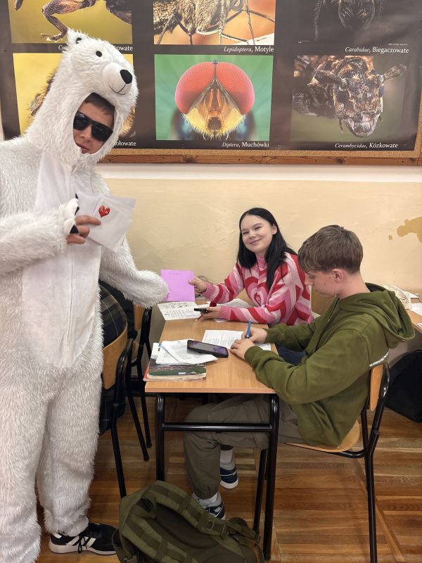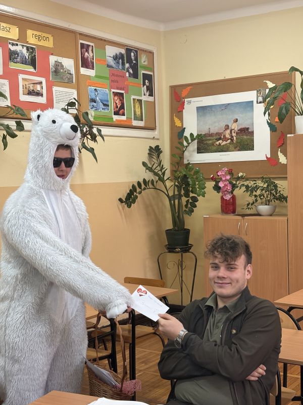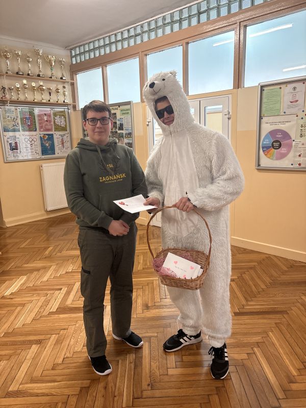 W tym dniu nasza społeczność szkolna ubrała się w czerwone elementy garderoby, a przedstawiciele Samorządu Uczniowskiego aktywowali pocztę walentynkową. Nasi uczniowie mogli również zapoznać się z „Białym Misiem”, a nawet go przytulić i wykonać pamiątkowe zdjęcie.