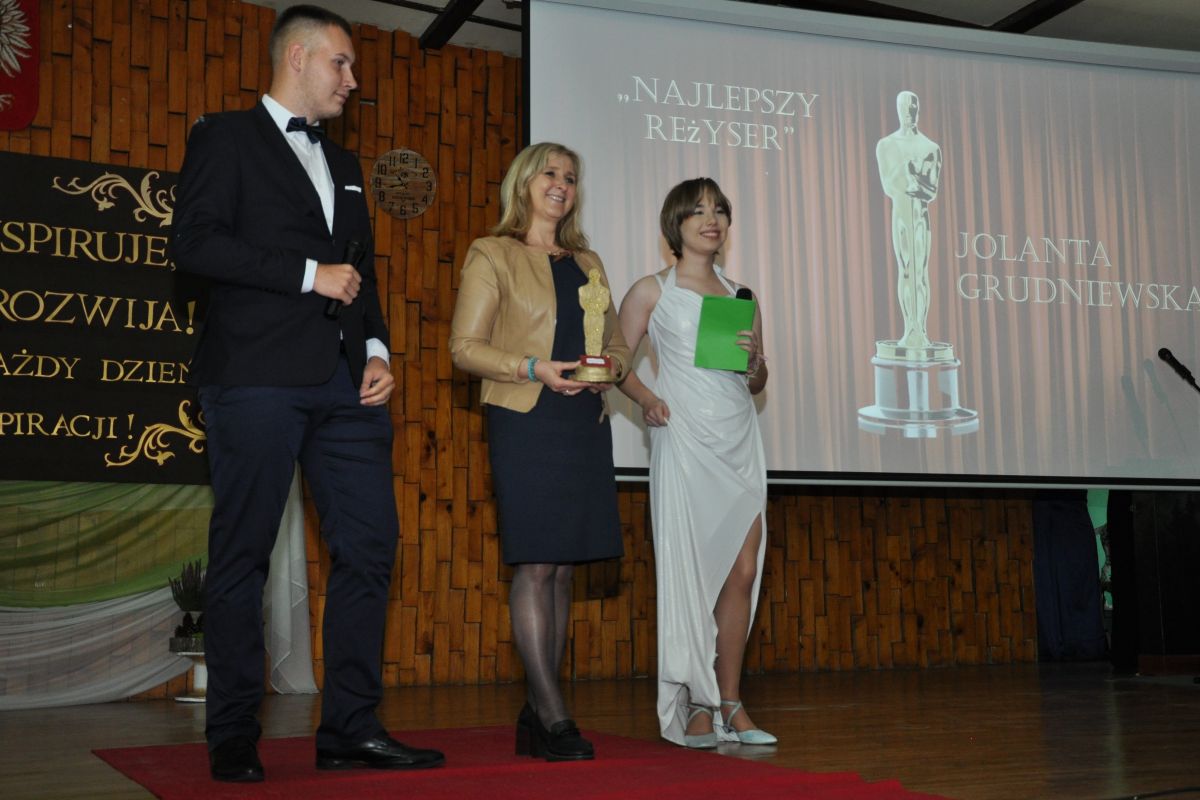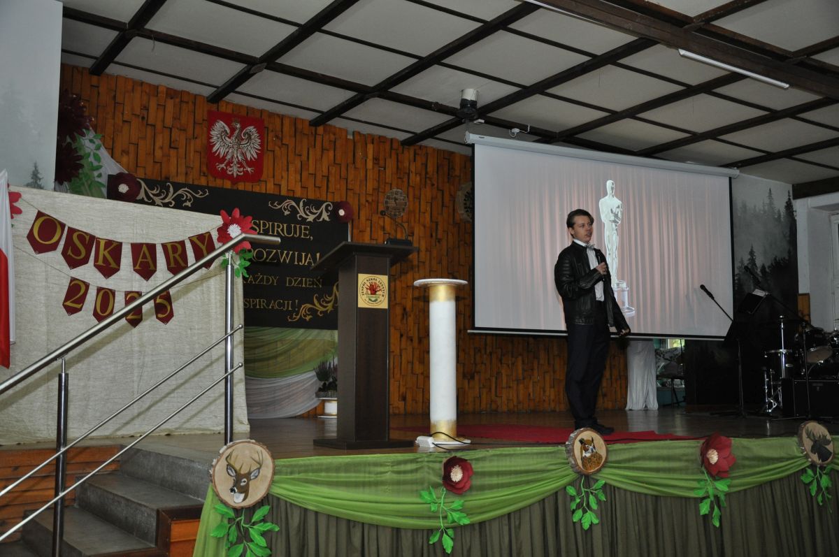 Program artystyczny przygotowany pod kierunkiem pani Anny Wywrót przez Samorząd Uczniowski oraz uczniów z grupy teatralnej „Leszy” miał wyjątkowo radosny i humorystyczny charakter. Młodzież wręczała nauczycielom symboliczne Oscary, doceniając ich wyjątkowe cechy, styl nauczania oraz codzienne zaangażowanie. Niezwykle celne komentarze opisujące nominowanych nauczycieli, pełne ciepłego humoru i dystansu, rozbawiły zgromadzoną publiczność, a oprawa muzyczna nadała wydarzeniu lekkości i wyjątkowego klimatu.
