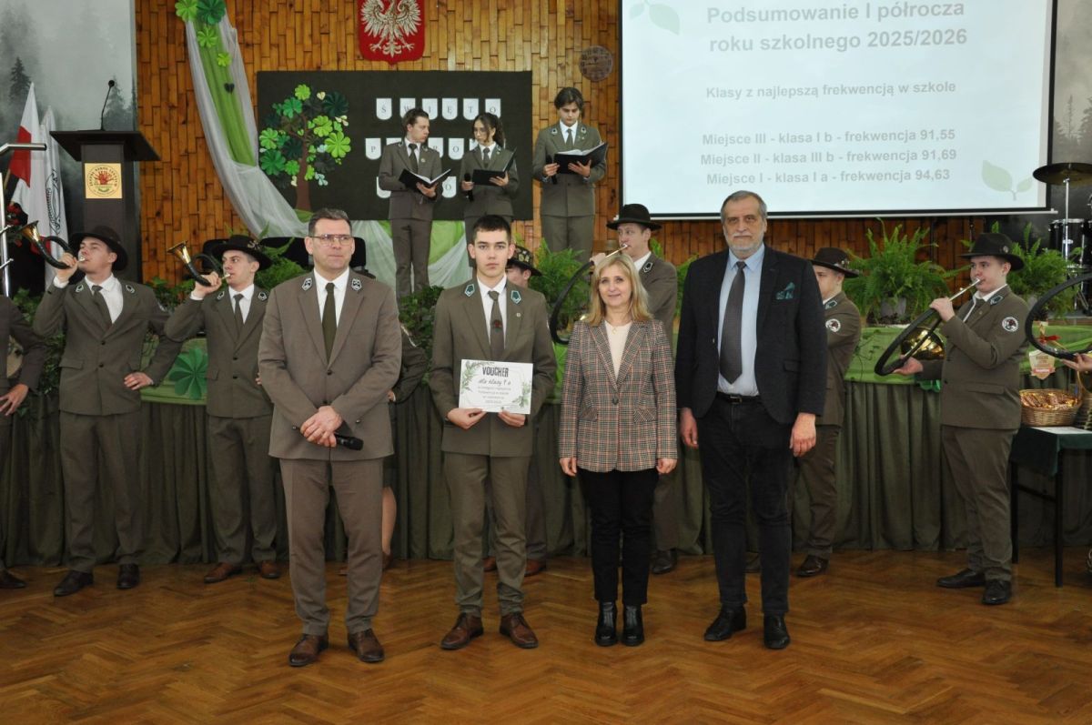 Podczas uroczystości podsumowano wyniki pierwszego półrocza roku szkolnego 2025/2026. Wręczono nagrody za najlepsze wyniki w nauce oraz najwyższą frekwencję – zarówno w klasach, jak i indywidualnie. Ogłoszono również wyniki konkursu fotograficznego pt. „Kolory jesieni”, zorganizowanego przez pana Andrzeja Gołdę.