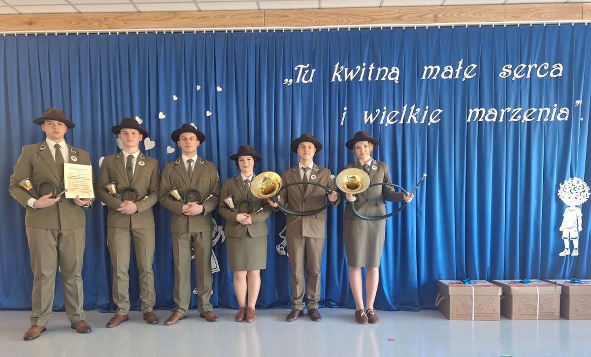 27 lutego 2026 roku sygnaliści myśliwscy z Technikum Leśnego w Zagnańsku wzięli udział w uroczystym otwarciu Przedszkola i Żłobka Gminnego w Oblęgorku.