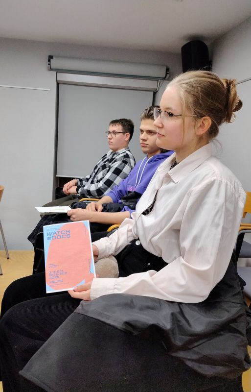 Po projekcji młodzież miała okazję uczestniczyć w dyskusji, która była bardzo ożywiona i emocjonująca. Piotr Odej, Piotr Woś i Agnieszka Żak z kl. 3a nie zawsze zgadzali się z opinią starszej od nich widowni.