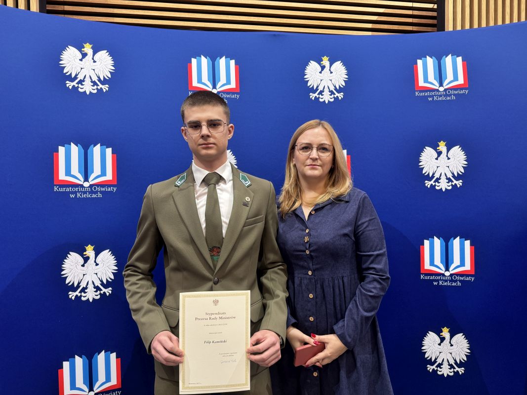 16 stycznia 2026 roku w Świętokrzyskim Urzędzie Wojewódzkim w Kielcach odbyło się uroczyste wręczenie stypendiów przyznanych przez Prezesa Rady Ministrów oraz Ministra Edukacji i Nauki dla uczniów szkół ponadpodstawowych z województwa świętokrzyskiego.