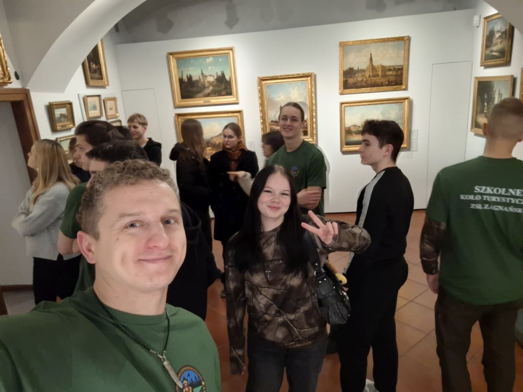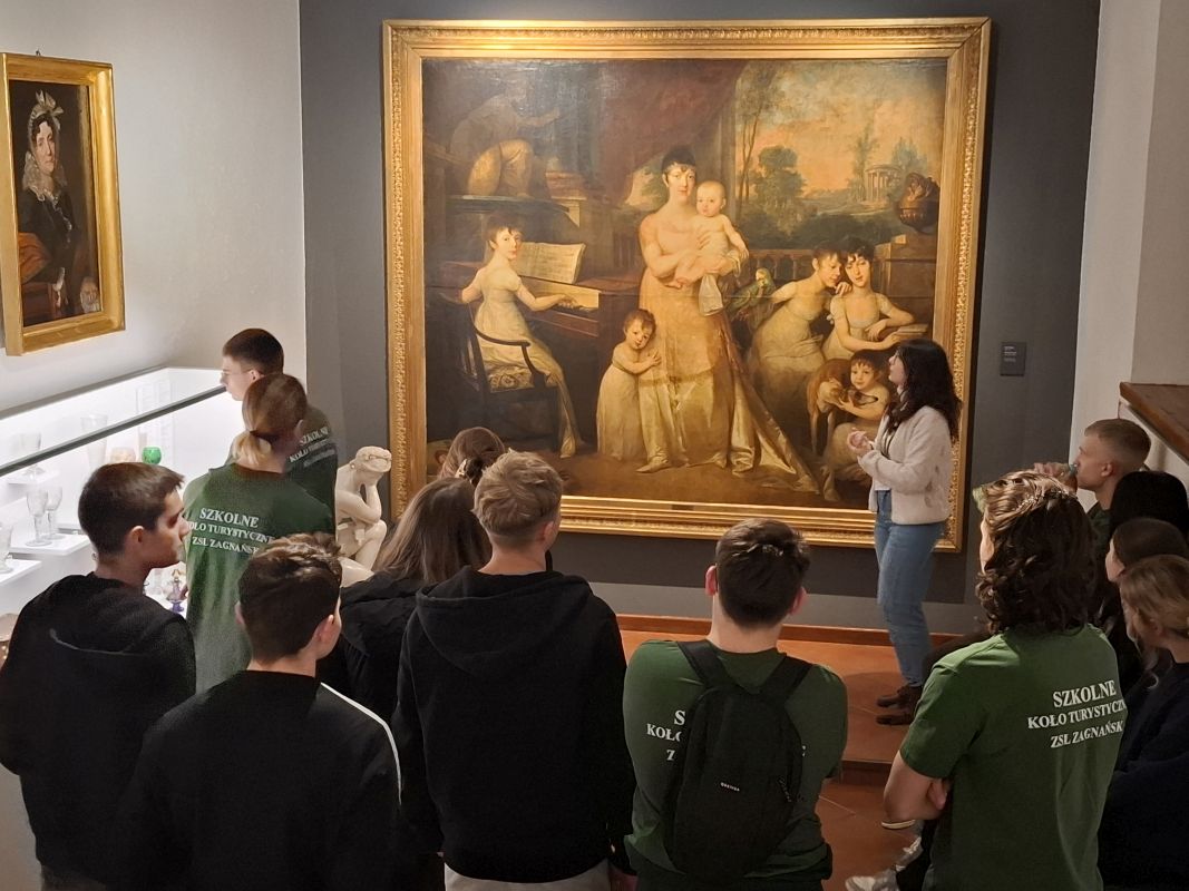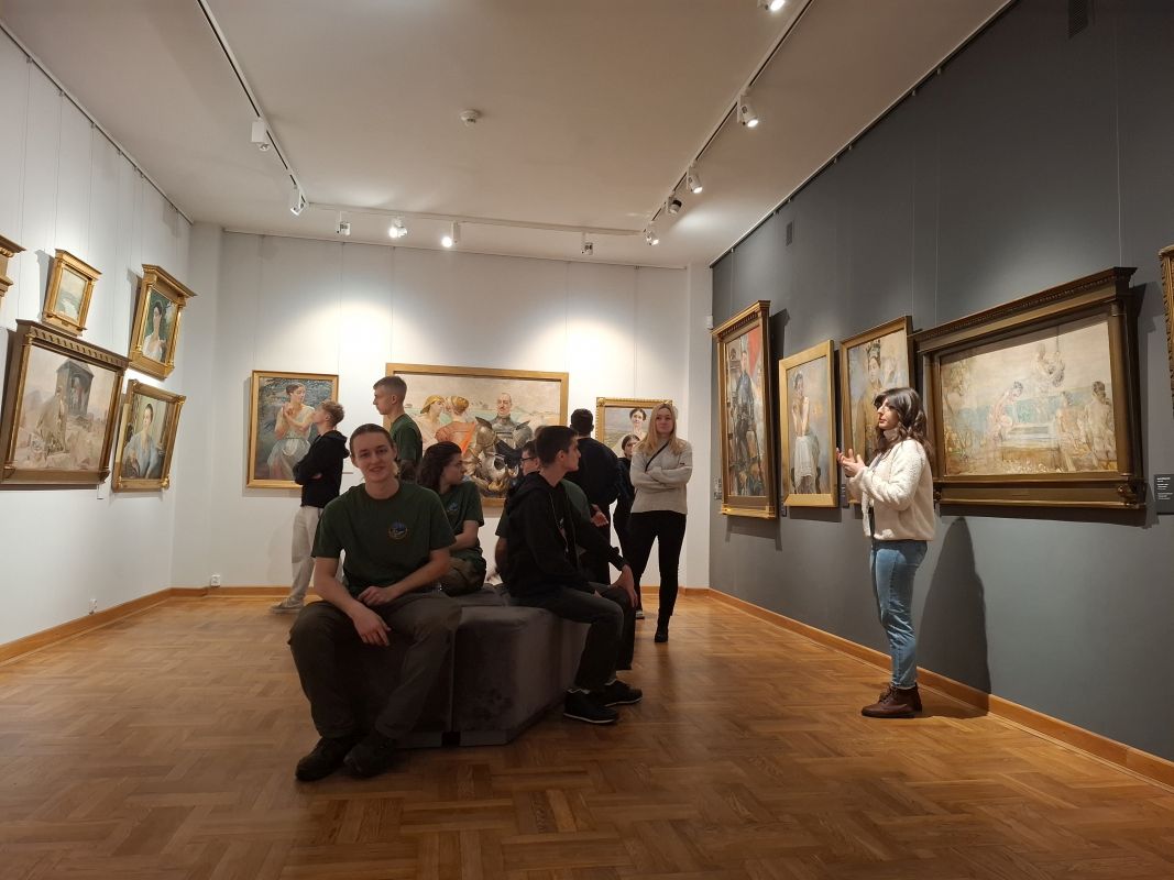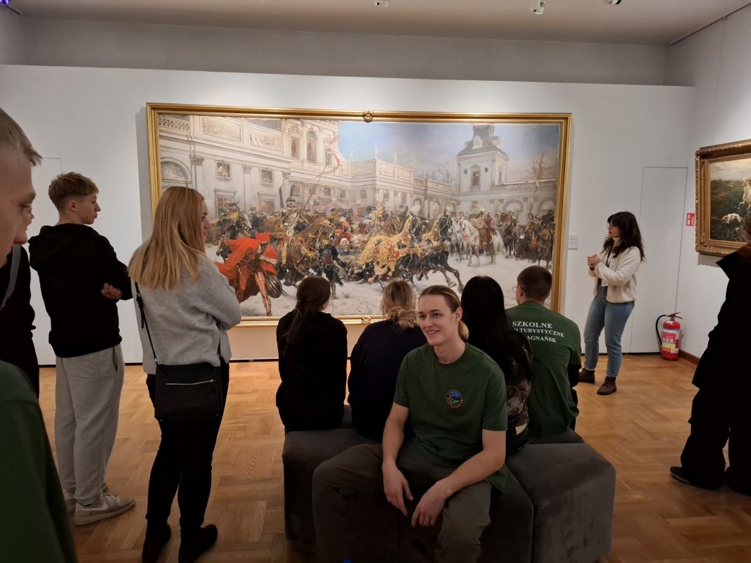Drugim punktem programu była wizyta w Muzeum Narodowym. Tam pani przewodniczka zapoznała nas z najwybitniejszymi dziełami znakomitych polskich malarzy: Jacka Malczewskiego, Artura Grottgera, Józefa Chełmońskiego, Józefa Brandta, Olgi Boznańskiej, Władysława Maleckiego oraz Józefa Szermentowskiego. Byliśmy pełni podziwu dla talentu wybitnych twórców, zafascynowały nas ukryte lub dotąd nieznane detale obrazów oraz ciekawostki z biografii artystów.