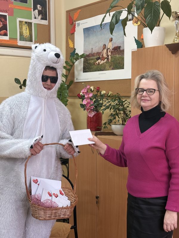 W tym dniu nasza społeczność szkolna ubrała się w czerwone elementy garderoby, a przedstawiciele Samorządu Uczniowskiego aktywowali pocztę walentynkową. Nasi uczniowie mogli również zapoznać się z „Białym Misiem”, a nawet go przytulić i wykonać pamiątkowe zdjęcie.