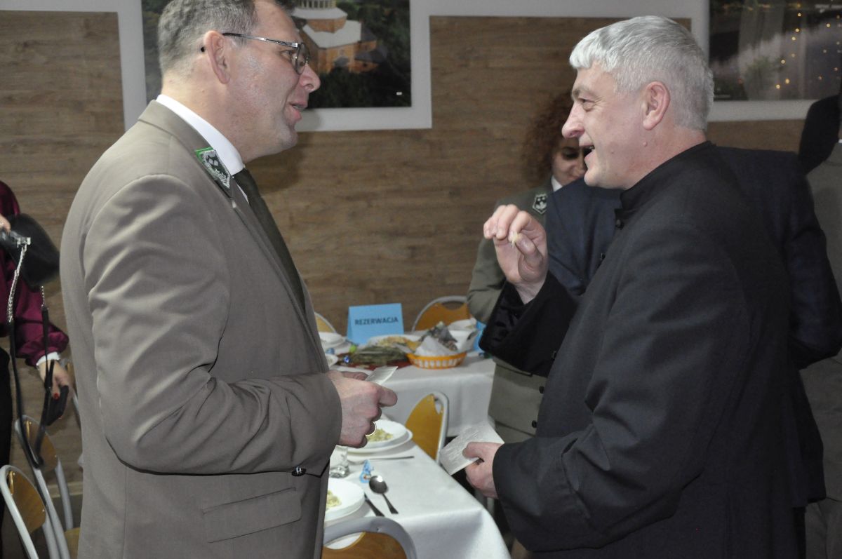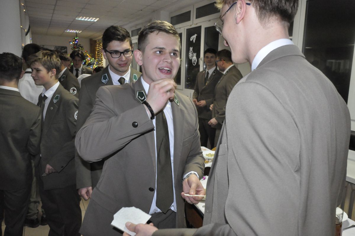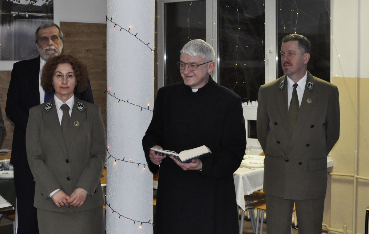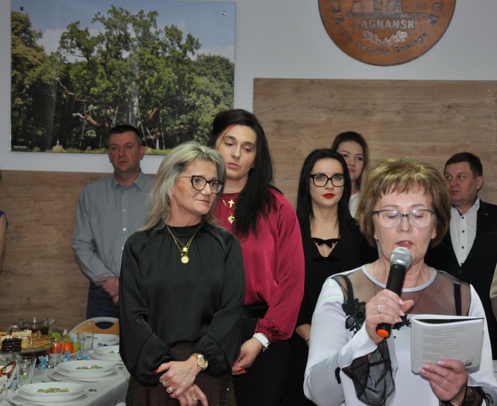 Swoją obecnością to szczególne spotkanie uświetnili: ks. Bogdan Szymkiewicz – proboszcz parafii pw. św. Józefa Oblubieńca Najświętszej Maryi Panny w Zagnańsku, pan Wojciech Grad – Nadleśniczy Nadleśnictwa Zagnańsk oraz pan Michał Kołodziejczyk – Przewodniczący Rady Rodziców. Wszyscy w skupieniu wysłuchali fragmentu Pisma Świętego odczytanego przez ks. Bogdana Szymkiewicza, po czym wspólnie, z radością i wzruszeniem, zaśpiewali kolędę „Dzisiaj w Betlejem”.