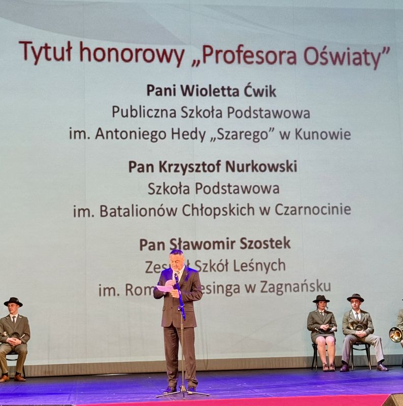 W trakcie wydarzenia wicewojewoda świętokrzyski Michał Skotnicki, wspólnie ze świętokrzyskim kuratorem oświaty Piotrem Łojkiem oraz posłem Lucjanem Pietrzczykiem, uhonorowali zasłużonych dyrektorów, nauczycieli i pracowników oświaty, wręczając im złote, srebrne i brązowe Medale za Długoletnią Służbę. Oprócz tego przyznano także nagrody Ministra Edukacji Narodowej oraz Świętokrzyskiego Kuratora Oświaty, będące wyrazem uznania za szczególne osiągnięcia zawodowe i wkład w rozwój edukacji. Świętokrzyski kurator oświaty Piotr Łojek z dumą wyczytał nazwiska nauczycieli uhonorowanych tytułem Profesora Oświaty, w tym pana Sławomira Szostka.